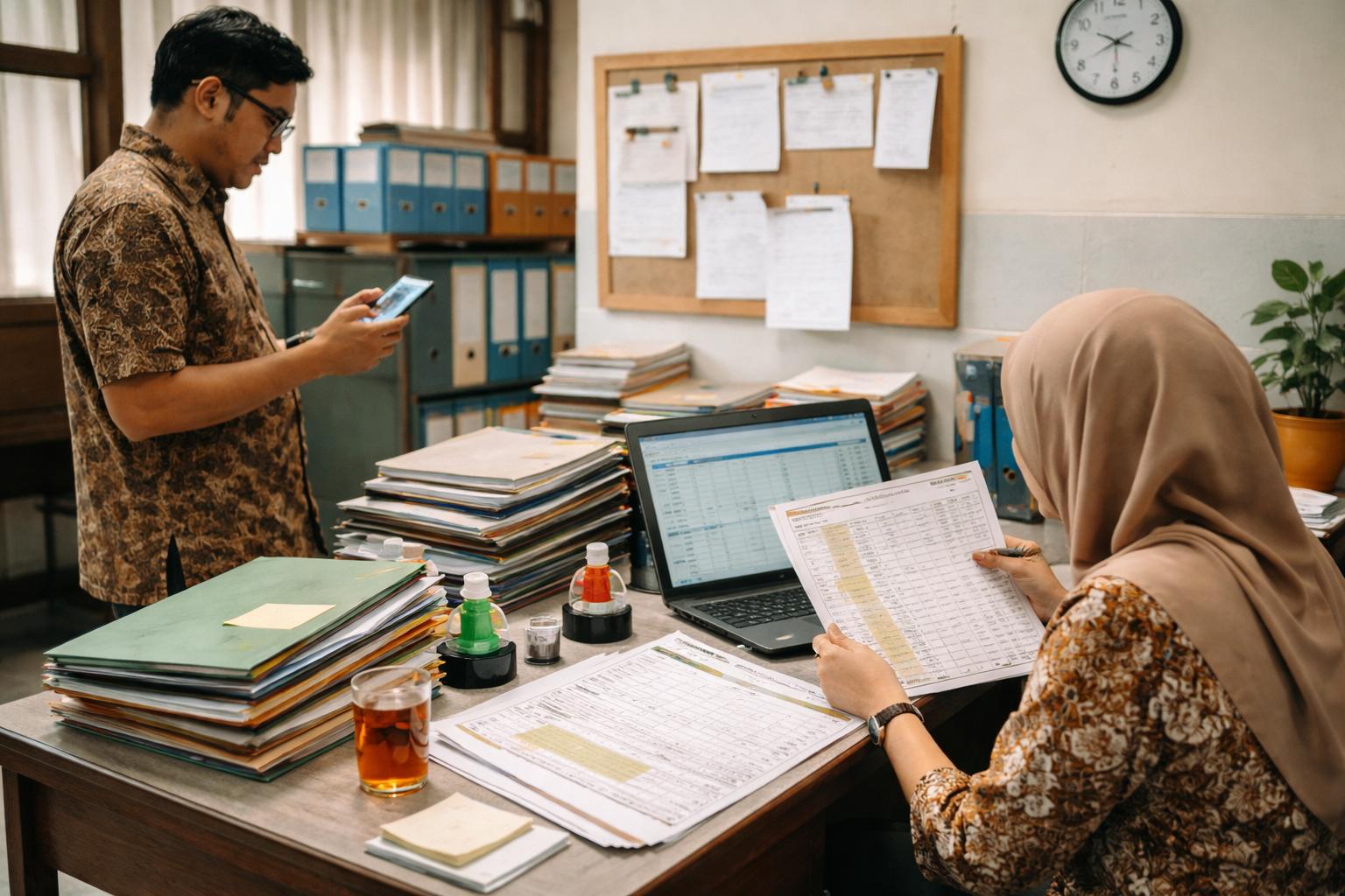 Pagi di sekolah biasanya dimulai dengan hal-hal yang tampak sepele. Seorang guru membuka grup kelas untuk mengecek apakah ada orang tua yang mengirim izin anak tidak masuk. Di meja sebelah, staf administrasi mencocokkan satu nama siswa dengan dua dokumen yang ternyata penulisannya sedikit berbeda. Beberapa menit kemudian, bel masuk berbunyi, tetapi masih ada daftar yang harus diperbarui, form yang harus dikirim ulang, dan pesan yang harus dibalas dengan kalimat yang hampir sama seperti kemarin.