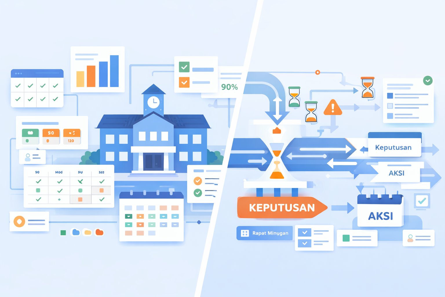 Namun kelimpahan fitur tidak otomatis berubah menjadi kecepatan keputusan. Di sinilah kesenjangan utamanya. Banyak dashboard sekolah kuat sebagai alat pelaporan dan refleksi, tetapi lemah sebagai alat ritme kerja mingguan. Data tersedia, tetapi tidak selalu hadir dalam format yang langsung menjawab pertanyaan operasional yang paling mendesak: kelas mana yang kehadirannya mulai turun minggu ini, siapa siswa yang perlu ditindaklanjuti segera, indikator mana yang bisa diperbaiki dalam 10 hari, atau keputusan kecil apa yang harus diambil kepala sekolah dan guru sebelum masalah membesar. Saat dashboard lebih terasa sebagai tempat “melihat kondisi” daripada “memutuskan tindakan”, maka sekolah cenderung menunda aksi sampai rapat besar berikutnya.