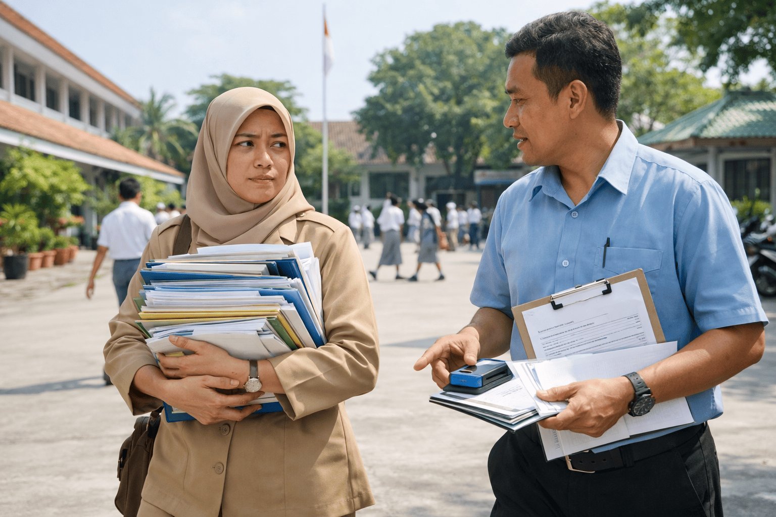 Audit beban kerja guru di New South Wales, Australia, juga memberi gambaran yang relevan: pemerintah setempat menargetkan pengurangan minimal lima jam kerja administratif guru per minggu, dan auditnya menemukan bahwa tugas operasional merupakan bagian signifikan dari beban kerja, dengan sekitar 60% tugas operasional itu berdampak langsung pada guru. Temuan seperti ini memperjelas satu hal: ketika sekolah menambah sistem tanpa menyederhanakan alur kerja, yang menanggung akibatnya hampir selalu guru dan staf garis depan.